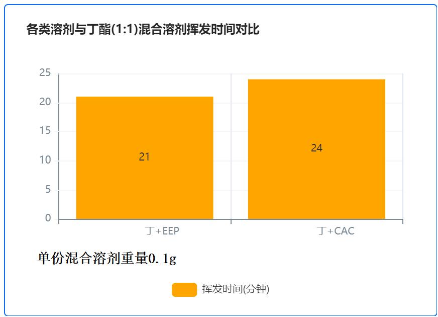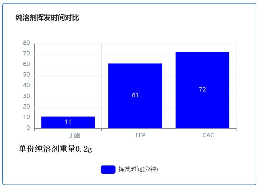 通过数据对比可知,EEP纯溶剂挥发性强于CAC;与丁酯1:1混合后,EEP混合溶剂挥发性也略强于CAC混合溶剂。