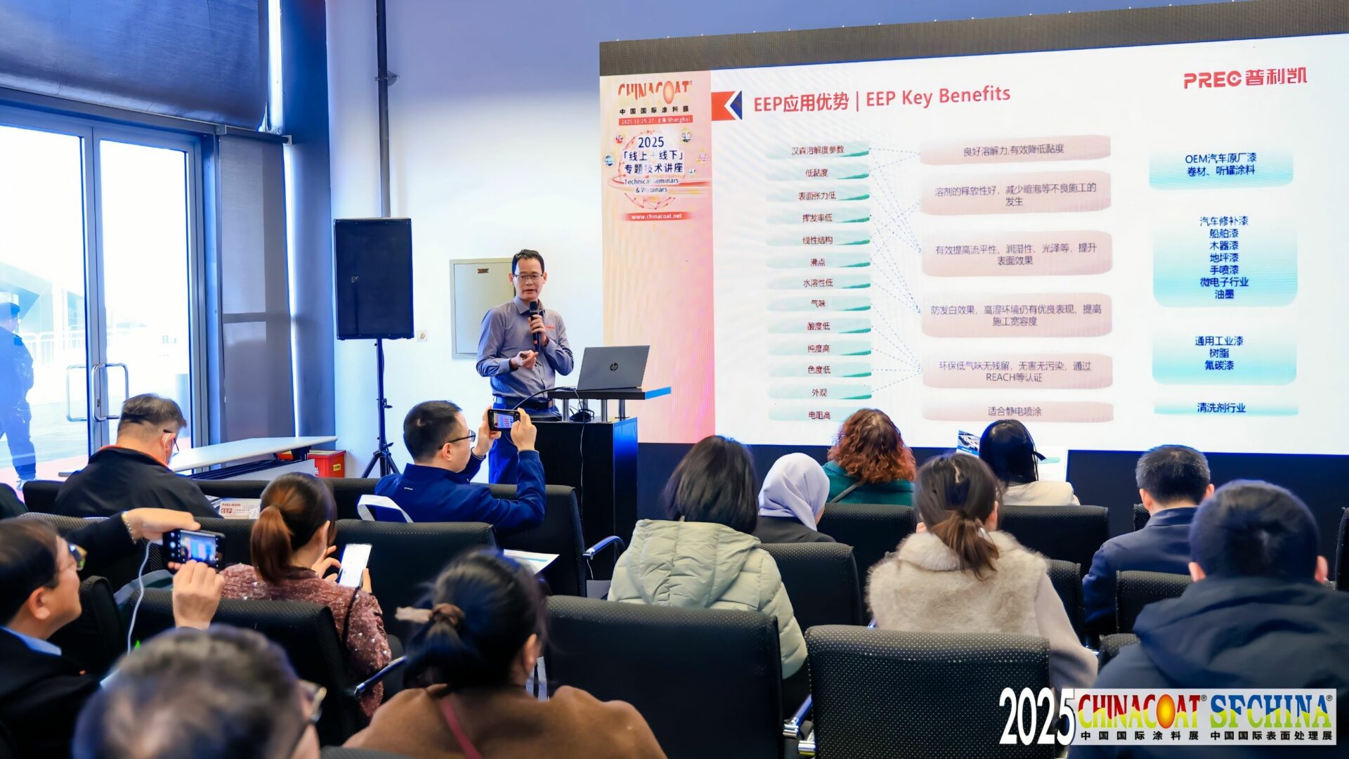 11月25日11:50-12:30,普利凯携手展会主办方在E3馆M22会议室成功举办主题为“普利凯功能溶剂有效提高涂料和油墨等表面效果及施工性”的线下技术讲座。现场互动交流踊跃,反响热烈,技术团队深入探讨了功能溶剂降低VOC排放、提升涂装效率进而为行业实现碳减排目标提供支持方面的最新成果,与会者纷纷表示讲座内容兼具前瞻性与实践价值,为行业技术升级提供了新思路。
